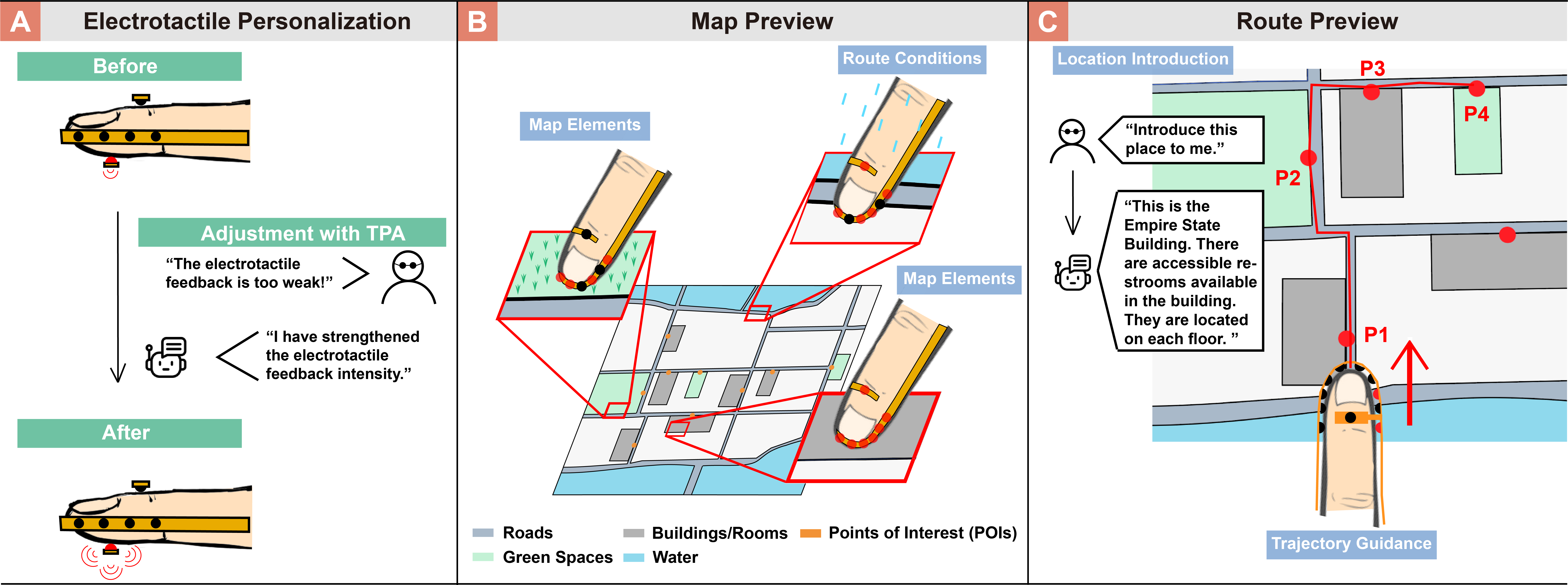 LLM-powered assistant with electrotactile feedback to assist blind and low vision people with maps and routes preview
